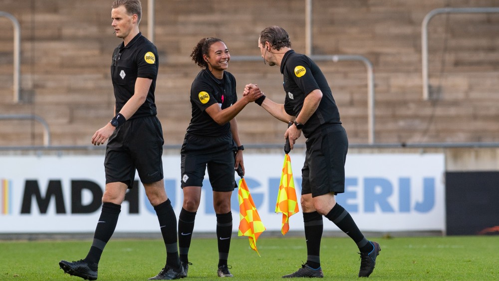 Het verschil met de eerste divisie was niet groot. “Het was anders, omdat er heel veel aandacht was voor deze wedstrijd. Het was deze week wel erg druk, maar los daarvan was het niet anders. Voor de buitenwereld is het natuurlijk bijzonder dat ik de eerste vrouw ben. Voor mezelf maakt dat het ook wel speciaal, want het is ergens wel onwerkelijk dat het nooit eerder een vrouw gelukt is.”