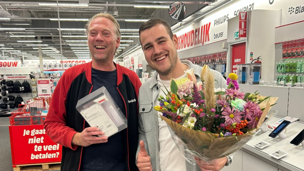 Afgelopen vrijdag kon Dario alsnog zijn nieuwe telefoon ophalen, bij de Mediamarkt in Hoorn. “Het is snel en goed geregeld. Ik kreeg zelfs nog een bos bloemen. Het was een bewogen week. Ik had veel contact met mensen die ook gedupeerd waren en kwam met dit verhaal zelfs op landelijke televisie.”