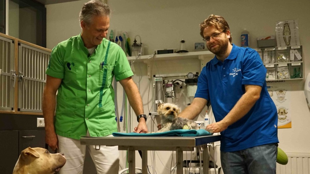 Nieskens bleef voor zijn eigen praktijk in Bovenkarspel stand-by staan in de nachten en weekenden. Toen hij hoorde dat Maurice Kuyten van Dierenkliniek Zwaag ook nachtdiensten wilde draaien, zocht hij de samenwerking op. Kuyten heeft zelf een jaar in de Amsterdamse spoedkliniek gewerkt en opent volgende week zijn kliniek in de regio. “Zeker ook omdat ik een praktijk naast huis heb kan ik binnen enkele minuten bij een patiënt zijn als er zorg nodig is”, vertelt Kuyten.