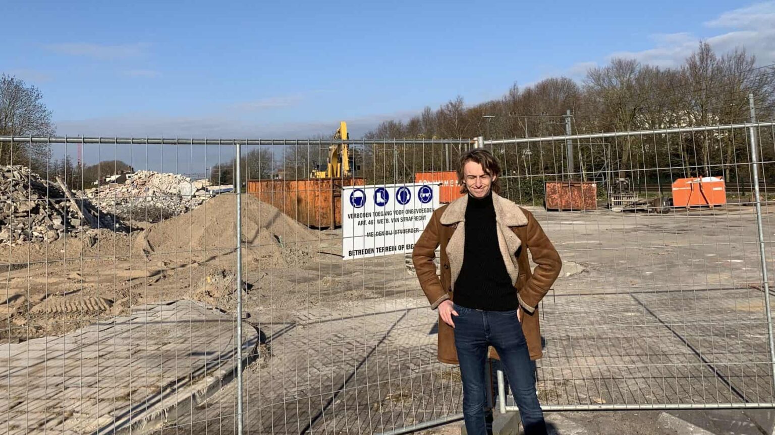 Van de garage is inmiddels weinig meer over, maar Jorik nam samen met Jessey nog even een kijkje op het terrein.