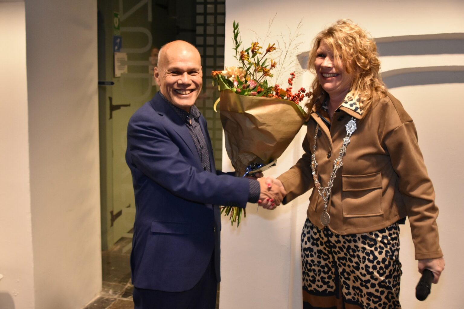 Stadsbeiaardier Frits Reynaert speelt exact 45 jaar op het carillon van de Zuidertoren in Enkhuizen. Dit werd donderdagavond gevierd met een kort concert, en een receptie na afloop.