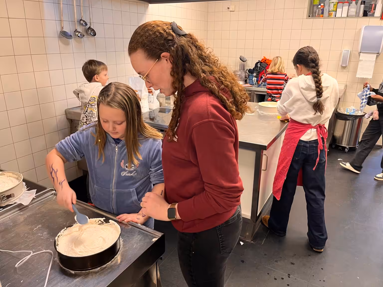 Er is geen prijs voor de beste taart. “Iedereen is winnaar. Het gaat om het proces: samen iets maken, trots zijn op wat je hebt gedaan en ontdekken wat je leuk vindt.” Julia doet mee met haar broertje. Ze had nog nooit gebakken. “Ik wist niet dat ik het zo leuk zou vinden. Ik wil thuis ook taarten en koekjes gaan bakken.”