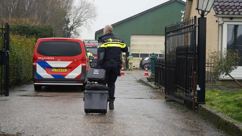 Er staat een indrukwekkend wagenpark voor de oprit van de woning aan de Westerwijzend. Brandweer, politie, medewerkers van de omgevingsdienst: ze zijn er allemaal. Het geeft aan dat de vondst er niet één is van een paar wietplantjes, al kan de politie over de omvang nog niets zeggen. Het onderzoek is in volle gang.
