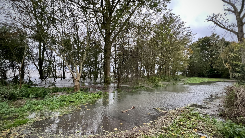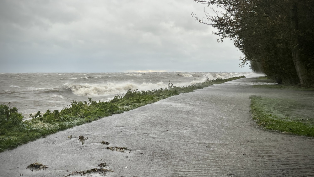Het Hoornse Julianapark, gelegen aan het Markermeer, heeft het met de storm goed te verduren. De wandelpaden langs het water lopen deels onder, golven slaan hard tegen de kant. Ook verderop in het park, is het een moerasgebied geworden waar je tot ver over je enkels in het water staat.