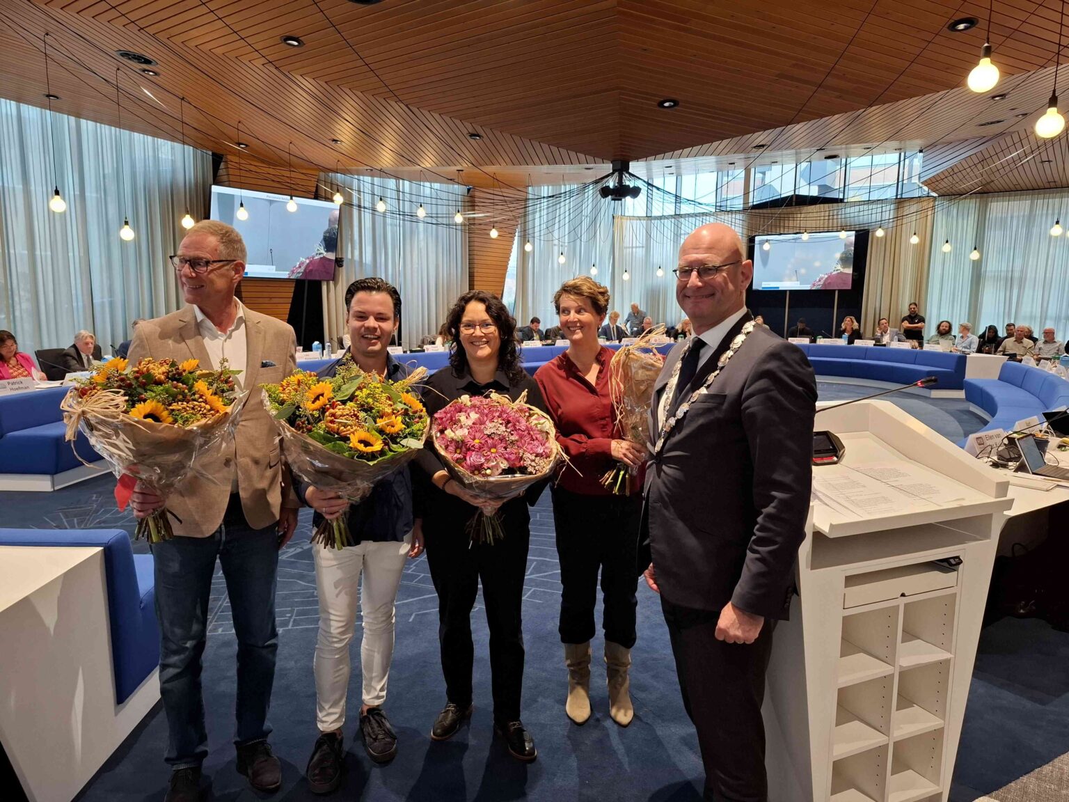 Na het afleggen van hun gelofte ontvingen de nieuwe commissieleden een feestelijke bloemenstruik als welkomstgebaar.