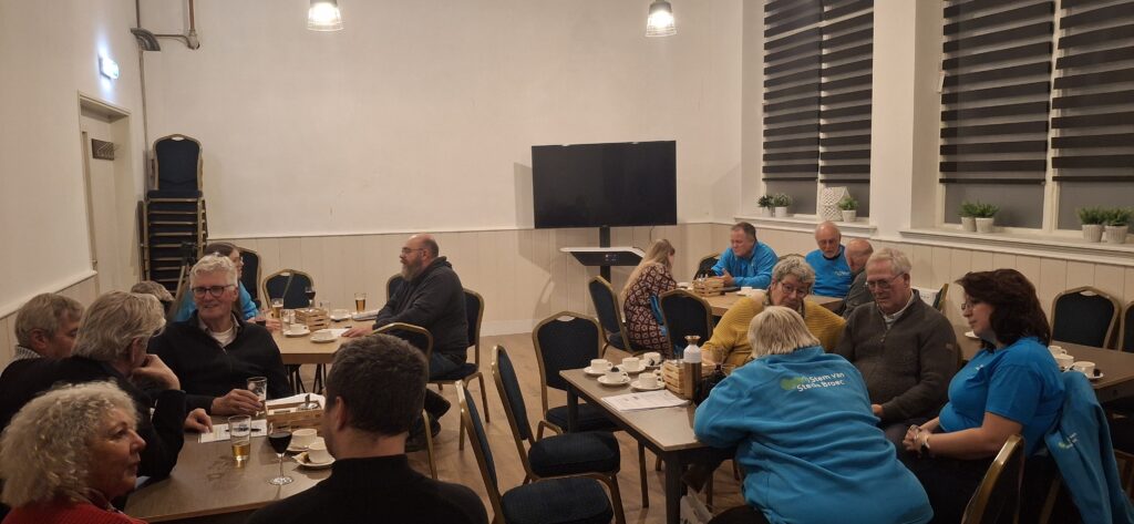 Enkele tientallen mensen, zowel leden van de partij als inwoners, zijn naar Vereenigingsgebouw De Tuf gekomen. De fusie van Gemeente Belangen Stede Broec en Onafhankelijke Partij heeft een lange geschiedenis. De partijen trokken al veel met elkaar op, delen elkaars standpunten, en bundelen nu de krachten. Stem van Stede Broec doet in maart 2026 mee aan de gemeenteraadsverkiezingen.