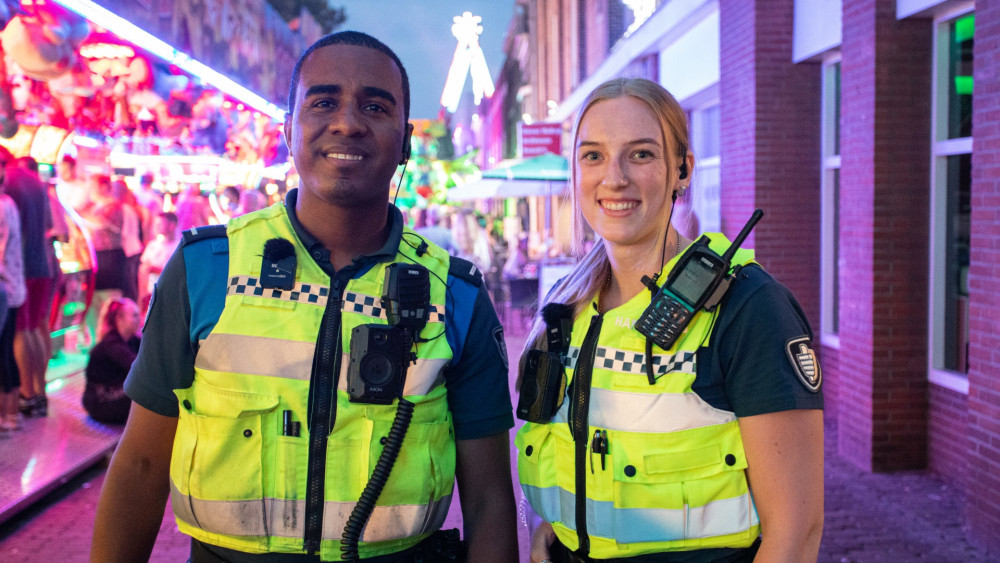 Het is dag vijf van de kermis in Hoorn. Hij draait samen met zijn collega Melissa (23) een dienst op de fiets. Melissa werkt sinds maart als boa en vertelt dat ze de avond ervoor haar vuurdoop op de kermis heeft beleefd. Iets waar ze naar uit heeft gekeken. “Het is wel wat rustiger dan ik had verwacht, maar er hangt een goede, gezellige sfeer en dat is ook prettig werken voor ons”, zegt ze.