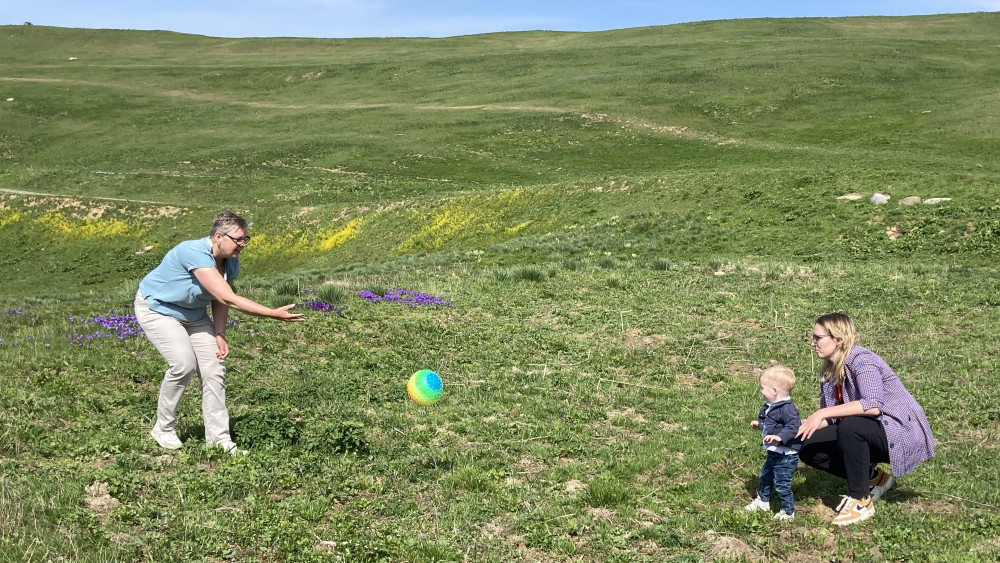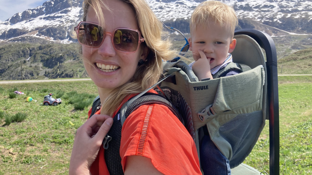 De kleine Joost gaat in de rugzak, hij mag vooral van het uitzicht gaan genieten. “Hij vindt het fantastisch op mijn rug”, vertelt Sandra. “Hij wordt meteen blij als ik de rugzak te voorschijn haal.” Ze hebben goed getraind in Nederland. “Het zal vast af en toe zwaar worden, maar we hebben geen haast”, zegt moeder Margriet.