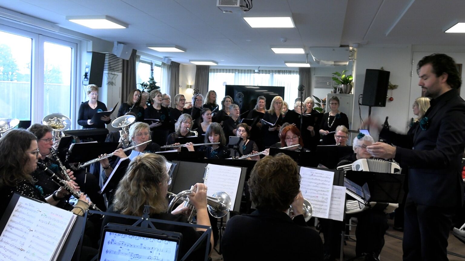 Het Omring Orkest verzorgde afgelopen zondag een sfeervolle kerstvoorstelling in het Gezinspaviljoen in Bovenkarspel. De zaal zat vol met bewoners, vrijwilligers en andere belangstellenden die samen genoten van bekende liederen en een warme kerstsfeer.