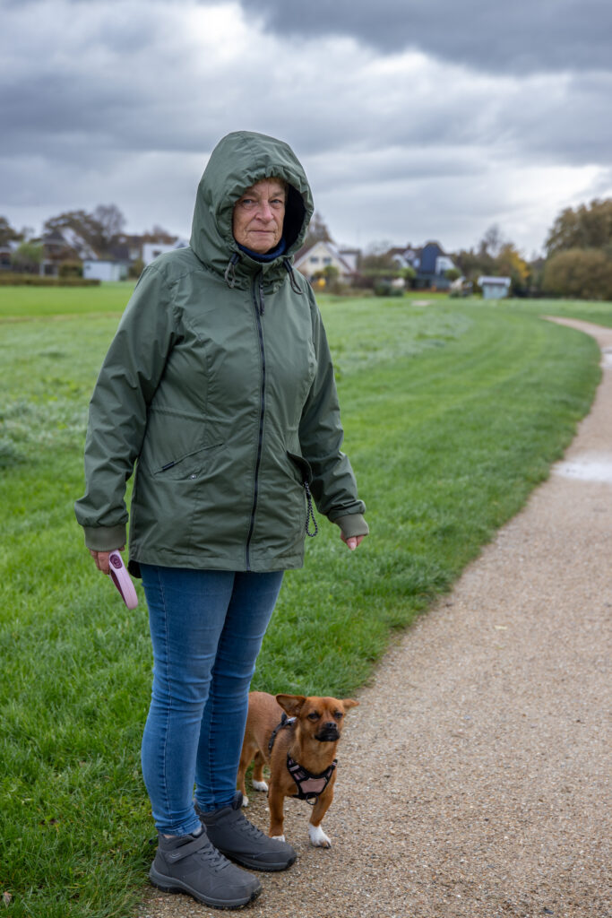Een stukje verderop loopt Astrid door het Kreekbos. Ze heeft de pas erin, want er staat een stevige wind. Toch weerhoudt dat haar er niet van om een wandeling te maken. Om haar heen rent haar hond Dirkje enthousiast heen en weer. Ze vertelt waarom dit park de favoriete plek van Dirkje is, en daarmee ook die van haar.