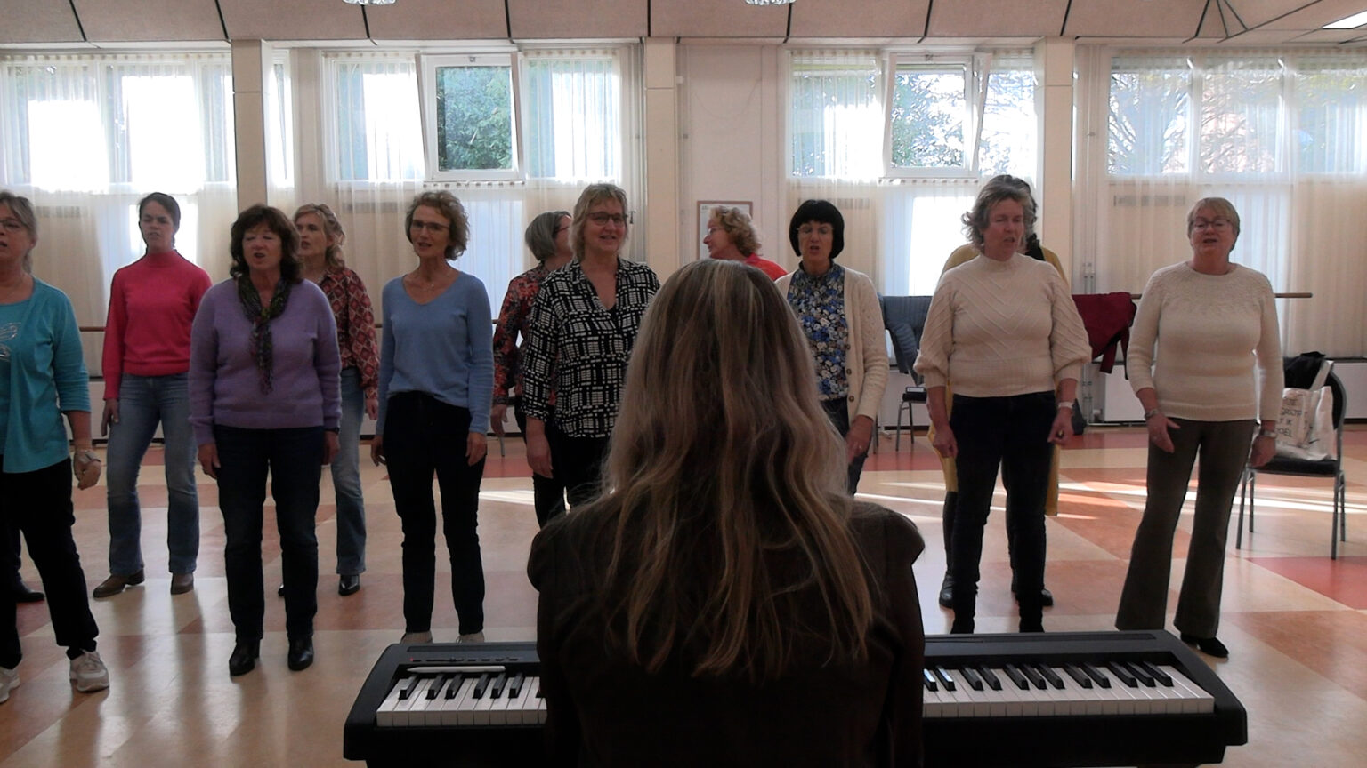 Caroline Schoemaker vertelt ons graag hoe deze groep vrouwen bij elkaar is gekomen en waarom zingen zo goed voor je is. Zo zegt de voorzitter van het vrouwenkoor: “Iedereen met een burnout moet lekker gaan zingen want dan ben je er zo vanaf.”