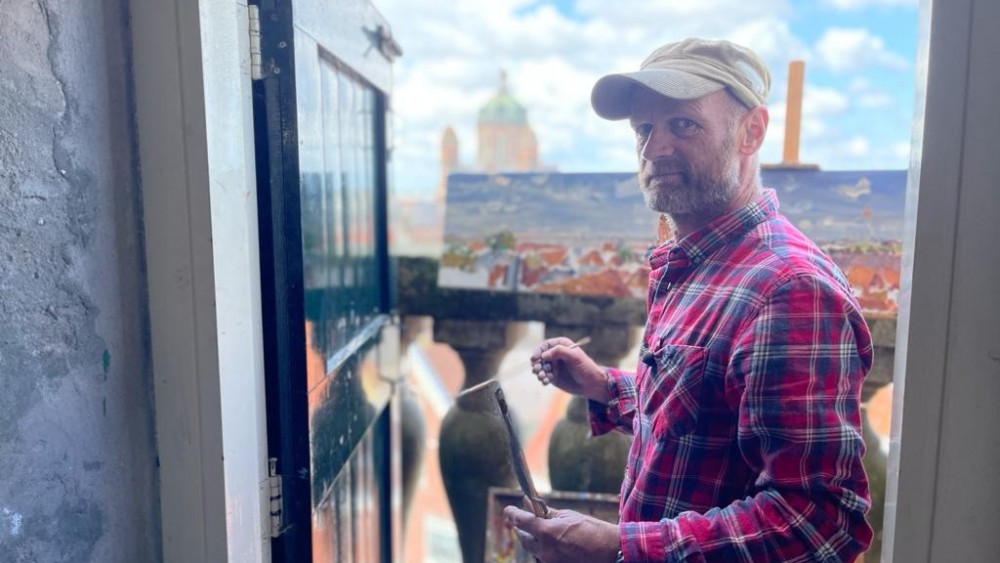 Kunstenaar Ruud Spil trekt met zijn schildersezel door Hoorn om stadsgezichten op het doek te zetten. Zoals de zaterdagmarkt en de Nieuwsteeg, de Hoofdtoren in de haven en de terrassen op de Roode Steen. Spil krijgt subsidie vanuit de gemeente en exposeert zijn kunstwerken volgende week tijdens het Hoornse Cultuurweekend.
