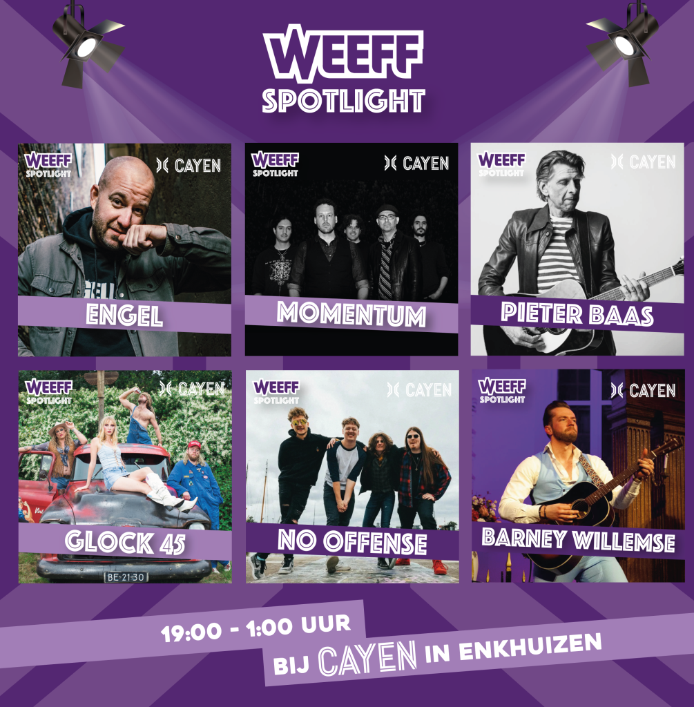 Tijdens de vooravond van het festival wordt in het radioprogramma ‘WEEFF Café’ samen met de artiesten vooruitgeblikt. Wil je dus alvast je verdiepen in de artiesten van het festival? Luister dan vanavond van 19:00 tot 21:00 uur.