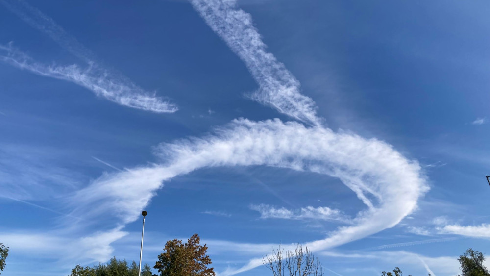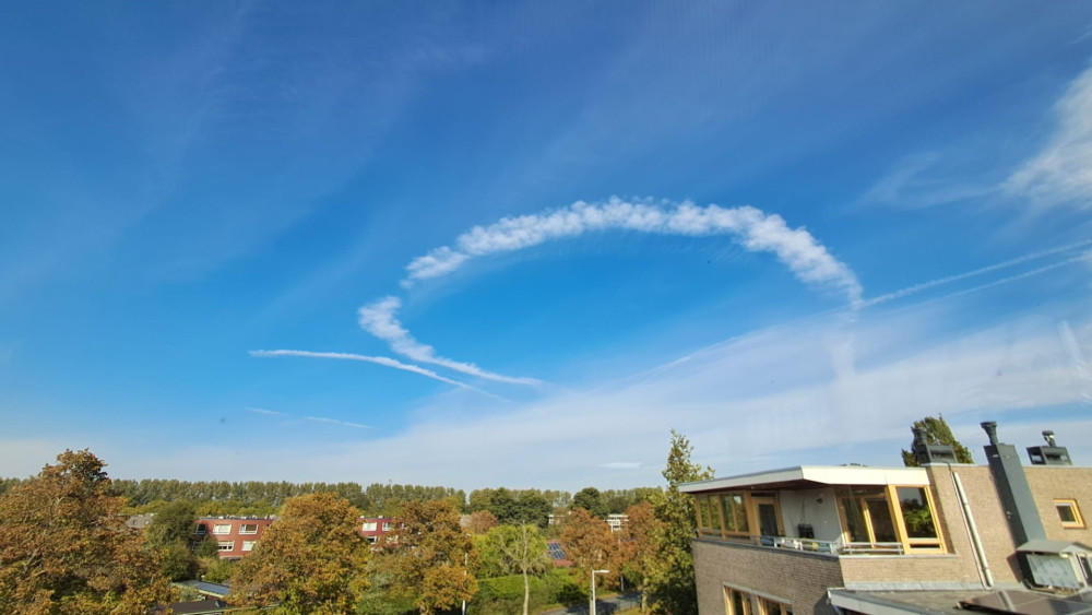 Een ander, die foto’s maakte vanuit Amsterdam-Noord: ‘Ik zie steeds dit soort halve cirkels in de lucht boven Amsterdam, al bekend? Ze komen en gaan, vanuit Oost op de ring naar Noord vier stuks en vanmorgen in de Tuinstraat in de Jordaan viel het ook op. Waarschijnlijk afkomstig van vliegtuigen, maar waarom?’