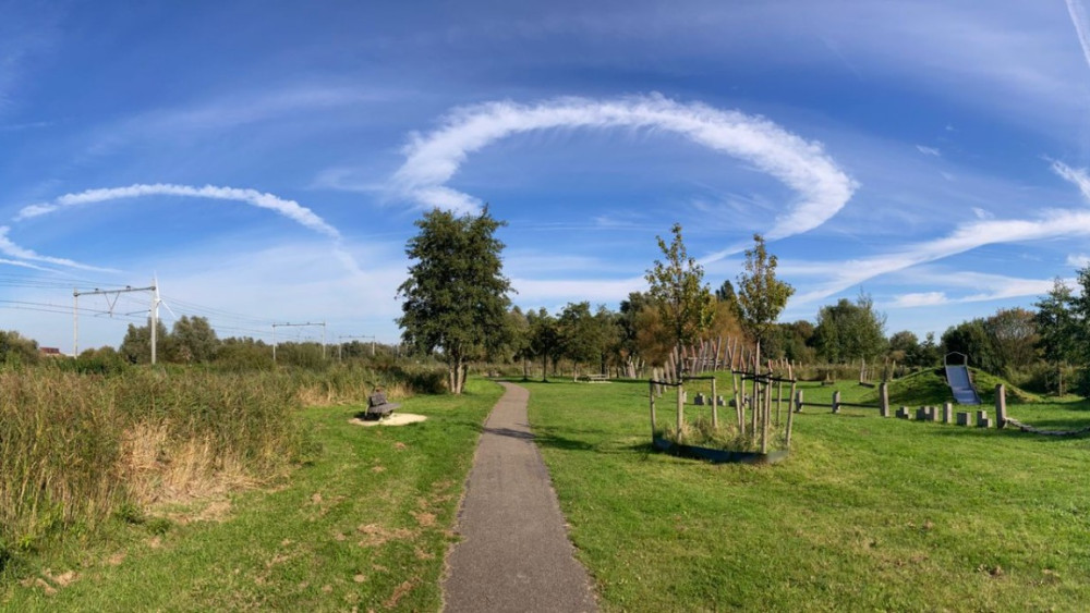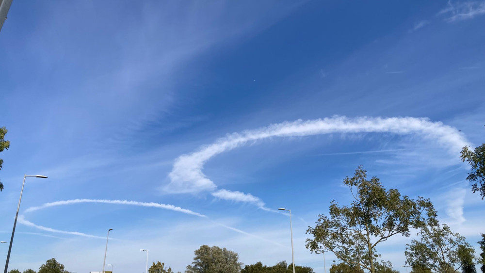 ‘Rare strepen in de lucht?!’, schreef iemand vanaf volkstuinpark De Bretten in Amsterdam Nieuw-West. Hij had geen idee wat er aan de hand kon zijn. ‘Ik heb niets zien vliegen’.