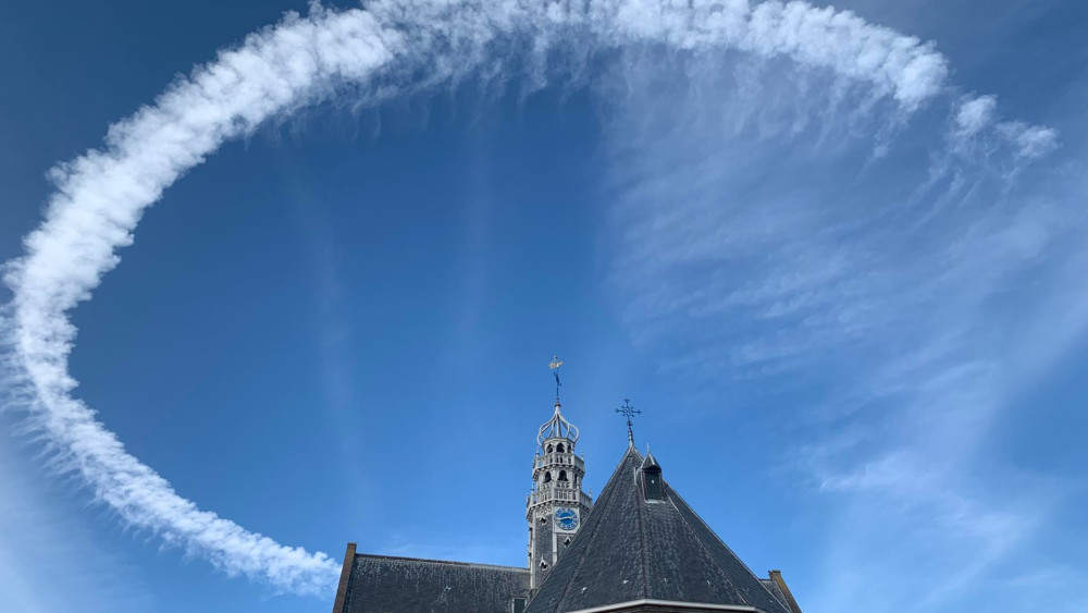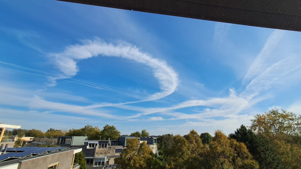 “Het vliegtuig dat dit patroon veroorzaakte, vloog dus veel hoger”, concludeert Van der Linden. “De wind op die hoogte komt uit het noordwesten, dus de ovaal boven Friesland en de Afsluitdijk is het meest recent. Daarna drijven de vliegtuigstrepen (contrails) mee met de wind en lossen ze langzaam op.”
